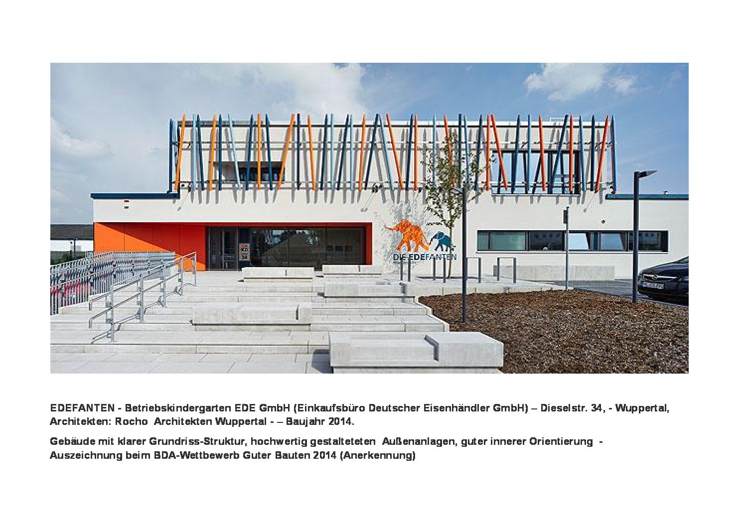 Betriebskindergarten der EDE GmbH (Einkaufsbüro Deutscher Eisenhändler GmbH) – Baujahr 2014 – Rocho Architekten Wuppertal.